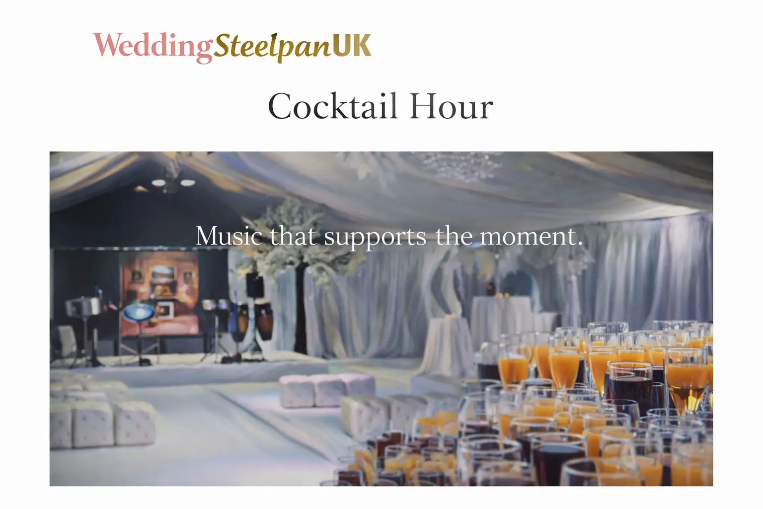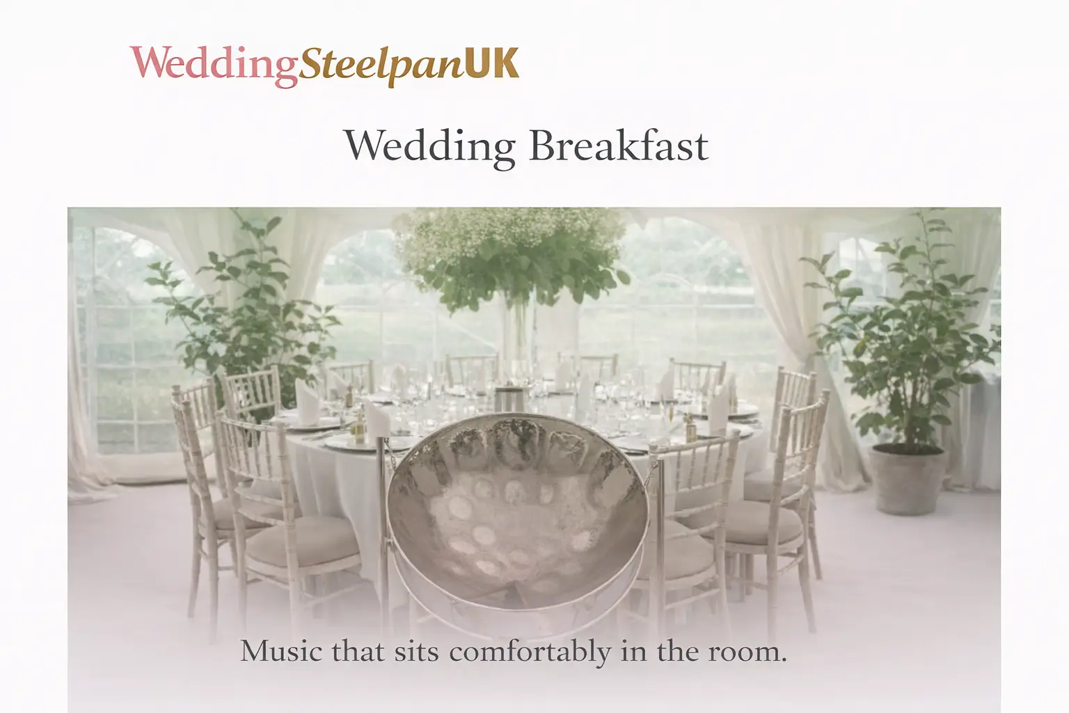 Whether it’s a simple, understated ceremony or a relaxed celebration with friends and family, the steelpan is used to support the atmosphere and let the day unfold naturally.